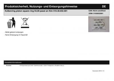 Kolbenring piston square ring 54,00 passt an Ktm 510.30.032.001