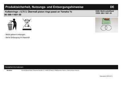 Kolbenringe + 0,75 3. Übermaß piston rings passt an Yamaha Yz 80 598-11601-30