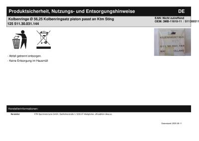 Titel: | Kolbenringe Ø 56,25 Kolbenringsatz piston passt an Ktm Sting 125 511.30.031.144 |