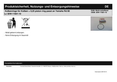 Titel: | Kolbenringe für Kolben + 0,25 piston ring passt an Yamaha Rd 80 Lc 30W-11601-10 |
