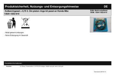Kolbenringeset + 0,75 3. Üm piston rings kit passt an Honda Mbx 130A1-GE2-610