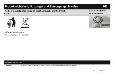 Titel: | Kolbenringeset piston rings kit passt an Suzuki Drz Dr-Z 125 L 07-16 |