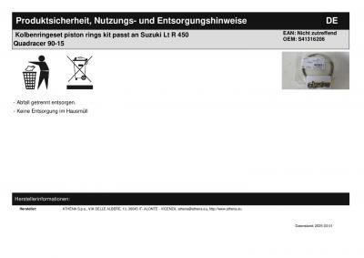Kolbenringeset piston rings kit passt an Suzuki Lt R 450 Quadracer 90-15