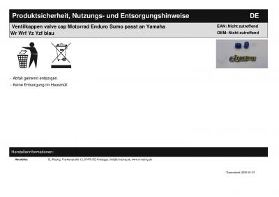 Titel: | Ventilkappen valve cap Motorrad Enduro Sumo passt an Yamaha Wr Wrf Yz Yzf blau |