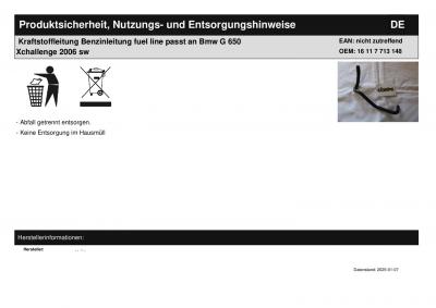 | Titel: | Kraftstoffleitung Benzinleitung fuel line passt an Bmw G 650 Xchallenge 2006 sw |