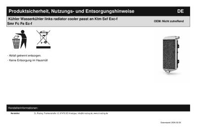 | Titel: | Kühler Wasserkühler links radiator cooler passt an Ktm Sxf Exc-f Smr Fc Fe Ec-f |
