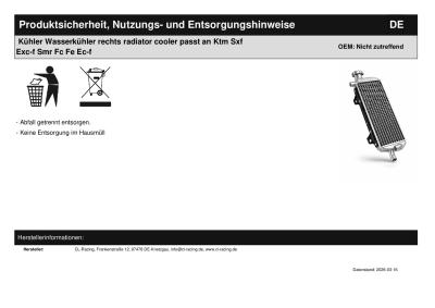 | Titel: | Kühler Wasserkühler rechts radiator cooler passt an Ktm Sxf Exc-f Smr Fc Fe Ec-f |