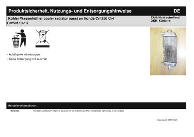 | Titel: | Kühler Wasserkühler cooler radiator passt an Honda Crf 250 Cr-f Cr250f 10-13 |