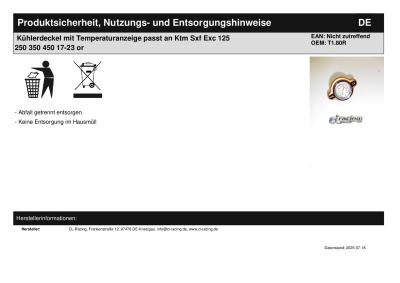 | Titel: | Kühlerdeckel mit Temperaturanzeige passt an Ktm Sxf Exc 125 250 350 450 17-23 or |
