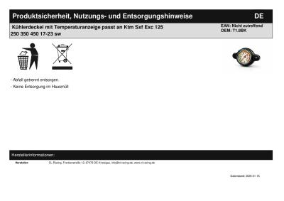 | Titel: | Kühlerdeckel mit Temperaturanzeige passt an Ktm Sxf Exc 125 250 350 450 17-23 sw |