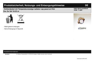 | Titel: | Kühlerdeckel mit Temperaturanzeige radiator cap passt an Ktm Exc Sx Sxf 16-23 or |