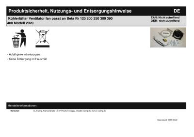 | Titel: | Kühlerlüfter Ventilator fan passt an Beta Rr 125 200 250 300 390 480 Modell 2020 |