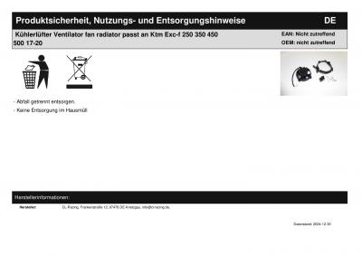 | Titel: | Kühlerlüfter Ventilator fan radiator passt an Ktm Exc-f 250 350 450 500 17-20 |
