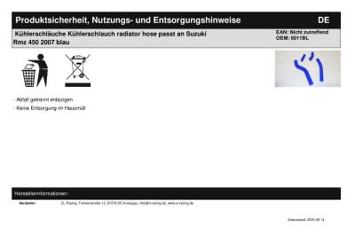 | Titel: | Kühlerschläuche Kühlerschlauch radiator hose passt an Suzuki Rmz 450 2007 blau |
