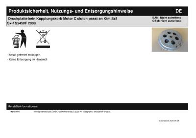 Titel: | Druckplatte kein Kupplungskorb Motor C clutch passt an Ktm Sxf Sx-f Sx450F 2008 |
