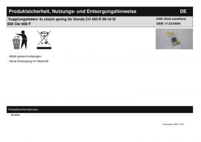 Titel: | Kupplungsfedern 4x clutch spring passt an Honda Crf 450 R 09-10 Xr 650 Cbr 600 F |