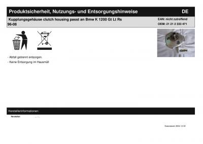 Titel: | Kupplungsgehäuse clutch housing passt an Bmw K 1200 Gt Lt Rs 96-08 |