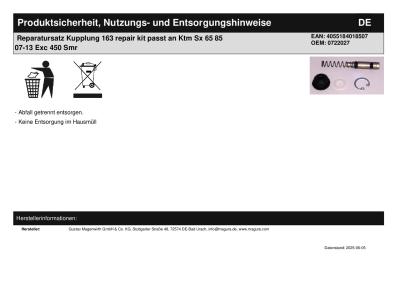 Titel: | Reparatursatz Kupplung 163 repair kit passt an Ktm Sx 65 85 07-13 Exc 450 Smr |