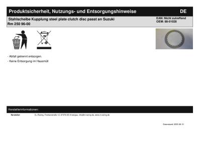 Titel: | Stahlscheibe Kupplung steel plate clutch disc passt an Suzuki Rm 250 96-00 |