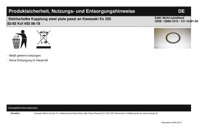 Titel: | Stahlscheibe Kupplung steel plate passt an Kawasaki Kx 250 82-85 Kxf 450 06-19 |