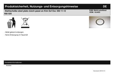 Titel: | Stahlscheibe steel plate clutch passt an Ktm Sxf Exc 350 11-12 450 525 |