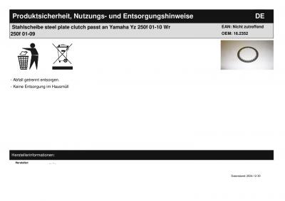 Titel: | Stahlscheibe steel plate clutch passt an Yamaha Yz 250f 01-10 Wr 250f 01-09 |