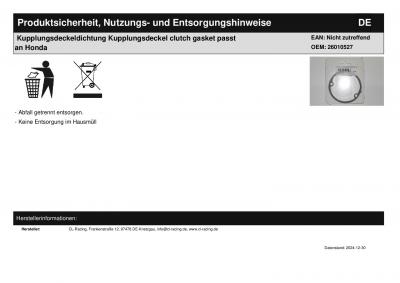 | Titel: | Kupplungsdeckeldichtung clutch gasket passt an Honda Cbr 1000 F 87-90 |