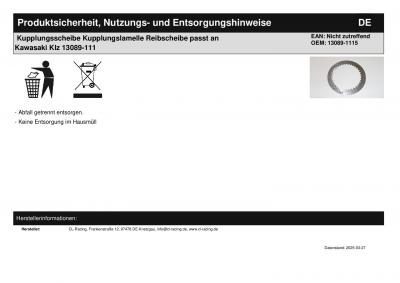 Titel: | Kupplungsscheibe Kupplungslamelle Reibscheibe passt an Kawasaki Klz 13089-111 |