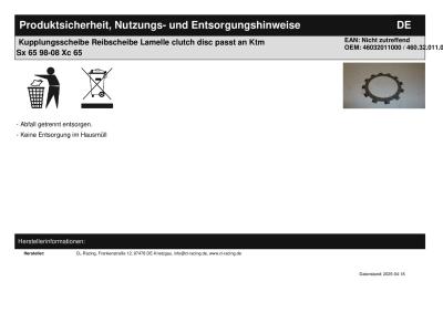 Titel: | Kupplungsscheibe Reibscheibe Lamelle clutch disc passt an Ktm Sx 65 98-08 Xc 65 |