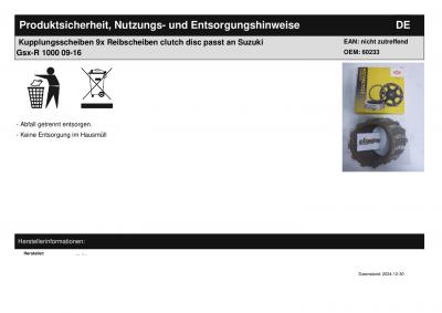 Titel: | Kupplungsscheiben 9x Reibscheiben clutch disc passt an Suzuki Gsx-R 1000 09-16 |