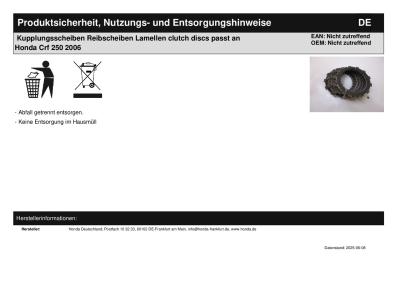 Kupplungsscheiben Reibscheiben Lamellen clutch discs passt an Honda Crf 250 2006