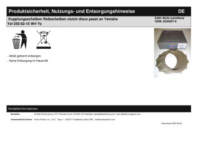 Titel: | Kupplungsscheiben Reibscheiben clutch discs passt an Yamaha Yzf 250 02-15 Wrf Yz |