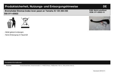 Titel: | Bremshebel Bremse brake lever passt an Yamaha Xt 125 200 250 550 5Y1-83922 |