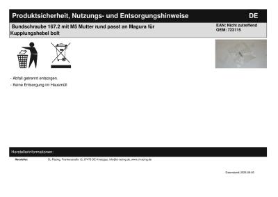 Titel: | Bundschraube 167.2 mit M5 Mutter rund passt an Magura für Kupplungshebel bolt |
