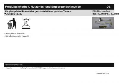 Titel: | Kupplungshebel Bremshebel geschmiedet lever passt an Yamaha Yzf 450 09-18 silb |
