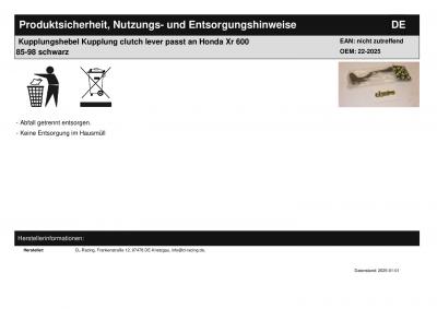 Titel: | Kupplungshebel Kupplung clutch lever passt an Honda Xr 600 85-98 schwarz |