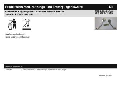 Titel: | Bremshebel Kupplungshebel Hebelsatz Hebelkit passt an Kawasaki Kxf 450 2019 silb |