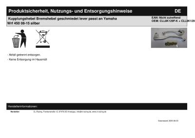 Titel: | Bremshebel Kupplungshebel geschmiedet lever passt an Yamaha Wrf 450 08-15 silber |