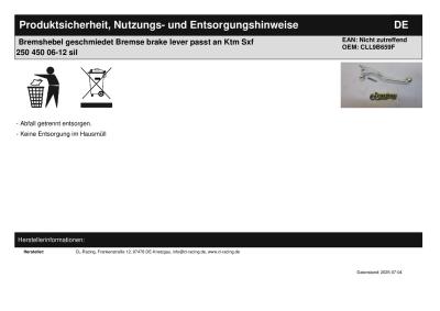 Titel: | Bremshebel geschmiedet Bremse brake lever passt an Ktm Sxf 250 450 06-12 sil |