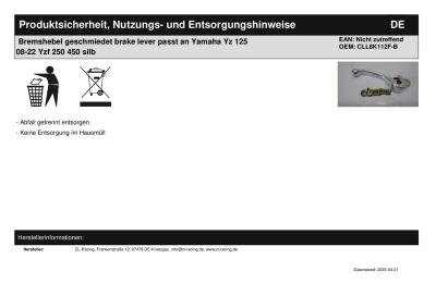Titel: | Bremshebel geschmiedet brake lever passt an Yamaha Yz 125 08-22 Yzf 250 450 silb |