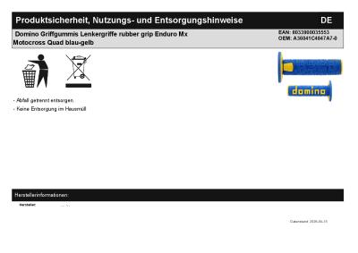 | Titel: | Domino Griffgummis Lenkergriffe rubber grip Enduro Mx Motocross Quad blau-gelb |