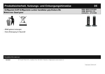 | Titel: | Griffgummi Griff Griffgummis Lenker handlebar grip Enduro Mx Motocross Quad grau |