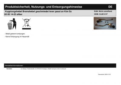 Titel: | Kupplungshebel Bremshebel geschmiedet lever passt an Ktm Sx 65 85 14-22 silber |