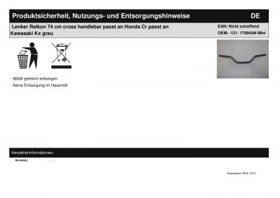 Titel: | Lenker Reikon 74 cm cross handlebar passt an Honda Cr passt an Kawasaki Kx grau |