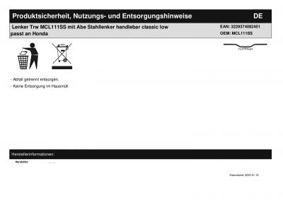 Lenker Trw MCL111SS mit Abe Stahllenker handlebar classic low passt an Honda