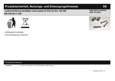 Titel: | Lenkererhöhung handlebar risers passt an Ktm Sx Exc 125 200 400 520 98-17 silb |
