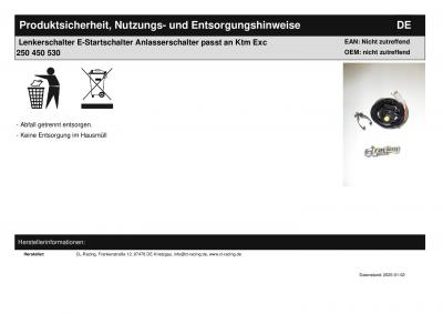 | Titel: | Lenkerschalter E-Startschalter Anlasser switch passt an Ktm Exc 250 450 530 |