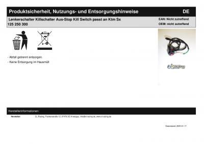 | Titel: | Lenkerschalter Killschalter Aus-Stop kill switch passt an Ktm Sx 125 250 300 |
