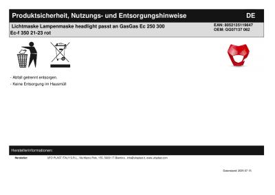 | Titel: | Lichtmaske Lampenmaske headlight passt an GasGas Ec 250 300 Ec-f 350 21-23 rot |
