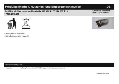 | Herstellernummer: | 17210-ZE1-822 |